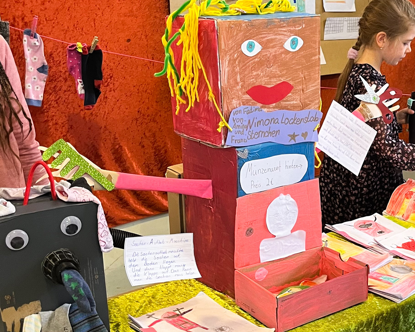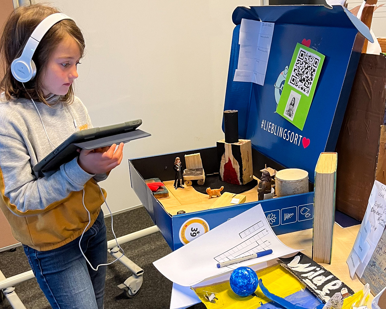 Am 26. April 2024 haben wir in unserer Pausenhalle zum „Tag des Buches“ eine Buchmesse veranstaltet. Jede Klasse hat sich im Vorhinein mit einem Buch beschäftigt und dazu z.B. Leserollen, Erzählkartons, eigene Geschichten oder andere Projektarbeiten erstellt. Jahrgang für Jahrgang konnten sich alle die Ergebnisse der anderen Klassen anschauen. Unsere Erstklässler wurden dabei von ihren Paten aus den 4. Klassen begleitet.