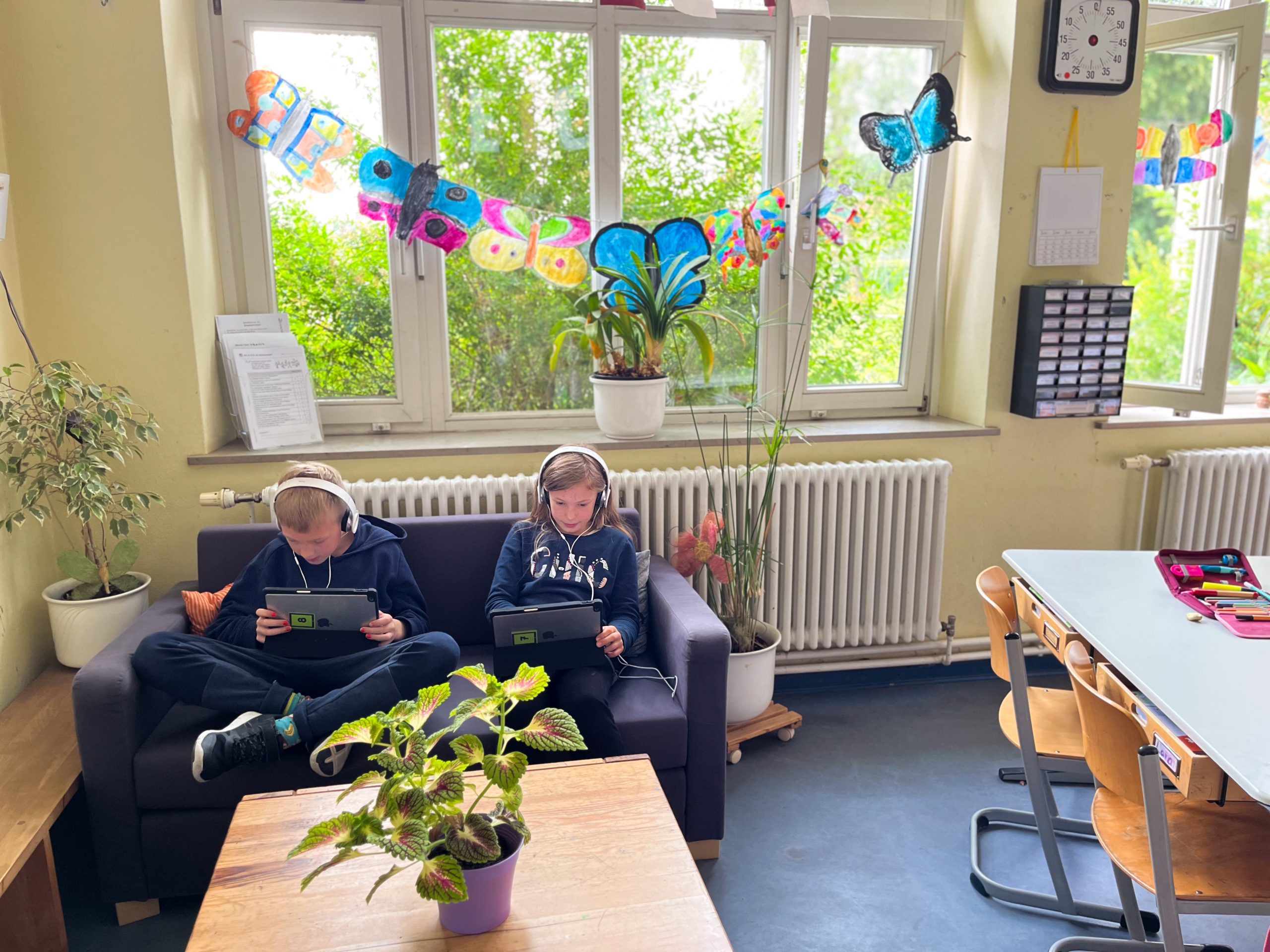 Unsere Schule bietet eine Mensa, eine Pausenhalle, eine Bibliothek, ein Spielzimmer, einen Kreativraum, einen Werkraum, eine Sporthalle und einen tollen Schulhof. Alle Klassenräume, der Musikraum und die Inselklasse sind mit digitalen Tafeln ausgestattet, und jede Klasse hat Zugang zu iPads.